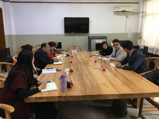 领导于1203室会见英国爱丁堡龙比亚大学Paul Homles教授,与会洽谈的还有校国际交流与合作处负责人及院外事办公室全体成员。