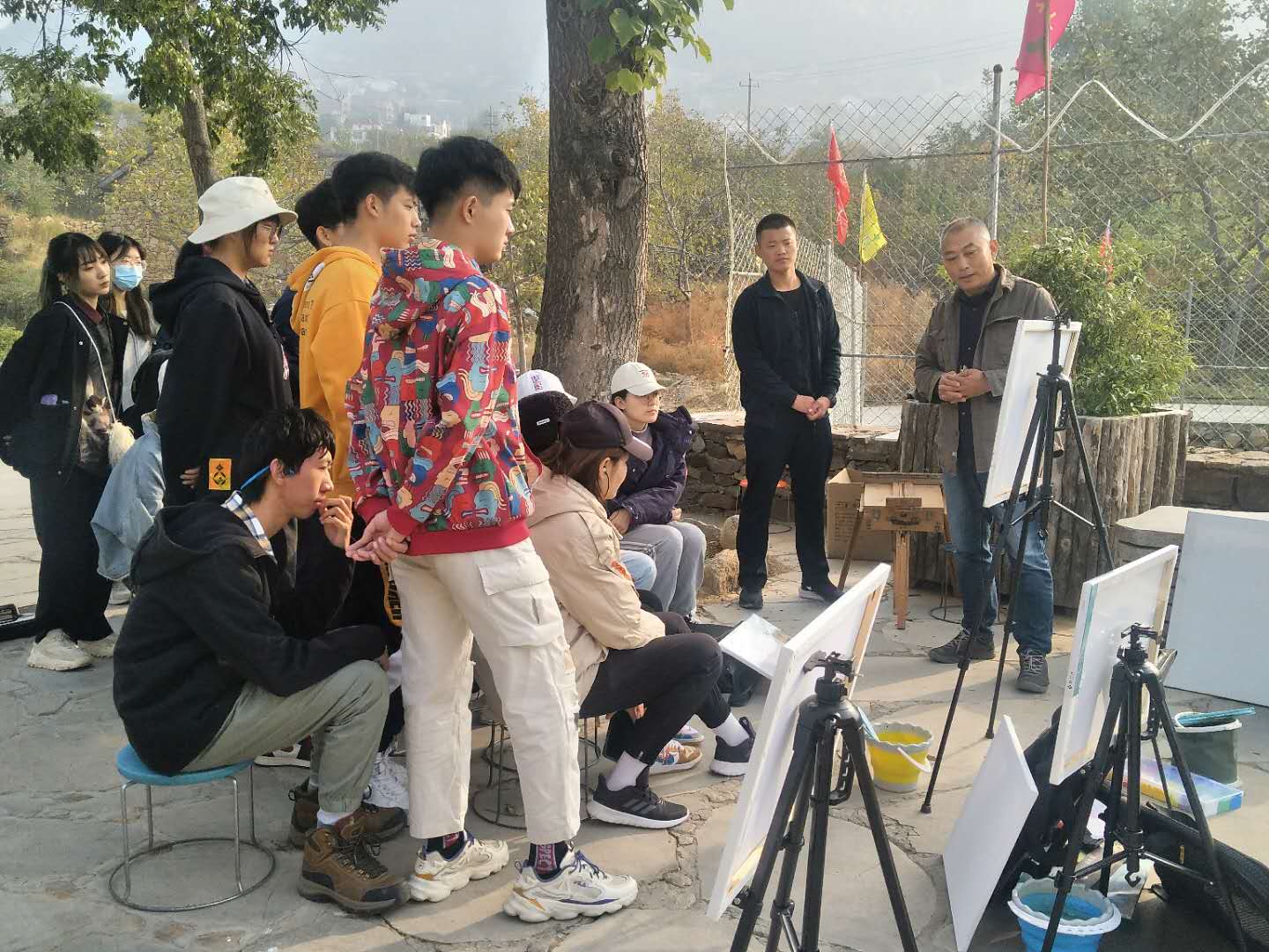写生教学期间,注册送彩金论坛委派分管副院长、副书记共同随队参与协调和管理,8名指导教师每人负责一个班级的指导任务,大家认真负责,细致指导学生创作、热心关注学生生活,切实保障学生安全,共同保障了写生活动秩序和教学质量。10月22日,院长范正红、党委书记杨春丽专门陪同张书学副校长到写生基地看望写生师生、检查教学效果,对写生工作的有序开展给与了充分肯定。