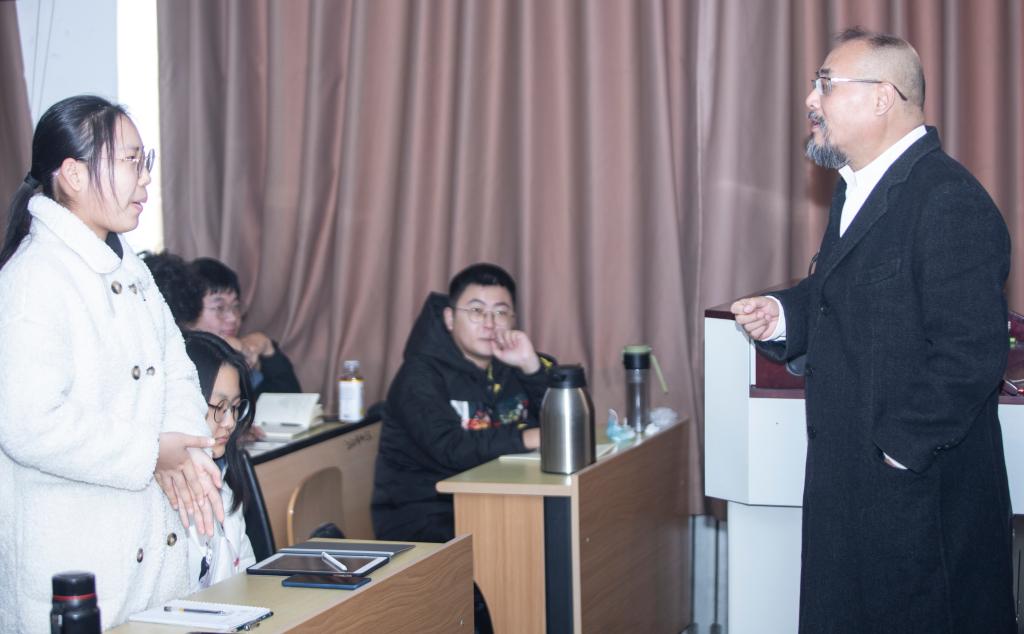 吴振伟先生以“城市更新中的文化创意和艺术推动设计创新”为主题,就“美的标准”、“文化创意”、“艺术设计”三个部分展开阐述,并结合具体景观照明设计方案展开细致分析。他以自己大量的设计作品和典型案例深入浅出地向学生们分享了对于灯光艺术的理解,并从内心分析的角度引导学生去感受和表达自我。吴振伟先生以师生互动的方式向学生们展示表达情感的方法。学生们纷纷走上讲台按照老师的要求体验自己身体和情绪的变化,课堂气氛在这样的体验中变得活跃,学生的学习热情明显提升。在授课的最后环节中,学生选取正反不同的照明设计方案,以自己对美的认知对每一个作品进行分析评价,吴振伟先生对每一位学生的讲述进行细致的指导和评价。