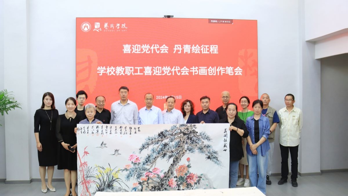 张培国表示,学校第二次党代会是我校高质量发展进程中的一件大事,得到了全校教职工的积极拥护和社会各界的热切关注。笔墨讴歌盛世,作品鼓舞人心,举办这样的笔会活动,既是我校全面加强文化建设、传承校园美育传统,不断加强艺术教育与实践创作的重要展示,也是我校教职工爱党、向党、热爱党的教育事业的炽热情怀和以优秀的艺术作品教育人、鼓舞人的优良教风的真实写照。