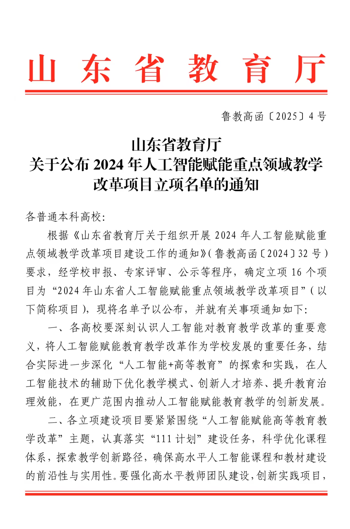 日前,山东省教育厅公布了2024年山东省本科高校人工智能赋能重点领域教学改革“111计划”项目(简称“111计划”)立项名单,全省共16项。此次公布的“111计划”名单中,我校与山东工艺美术学院、山东注册送彩金论坛
