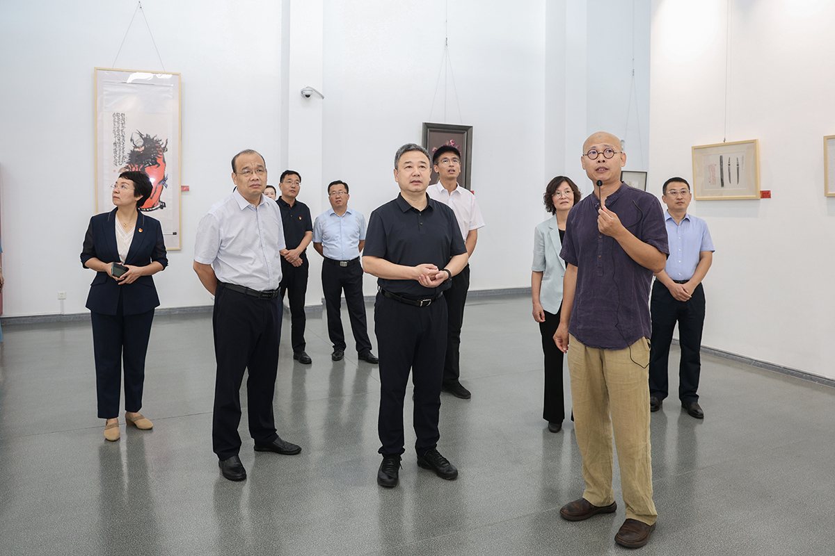 纪念中国人民抗日战争暨世界反法西斯战争胜利80周年“以史为鉴 铸魂育人”艺术作品展在海岱美术馆开幕。校党委书记查玉喜,党委副书记张培国,纪委书记、监察专员王玉花,党委委员、党委组织部部长马玉林,党委委员、党委宣传部部长于洪良等参观艺术作品展。
