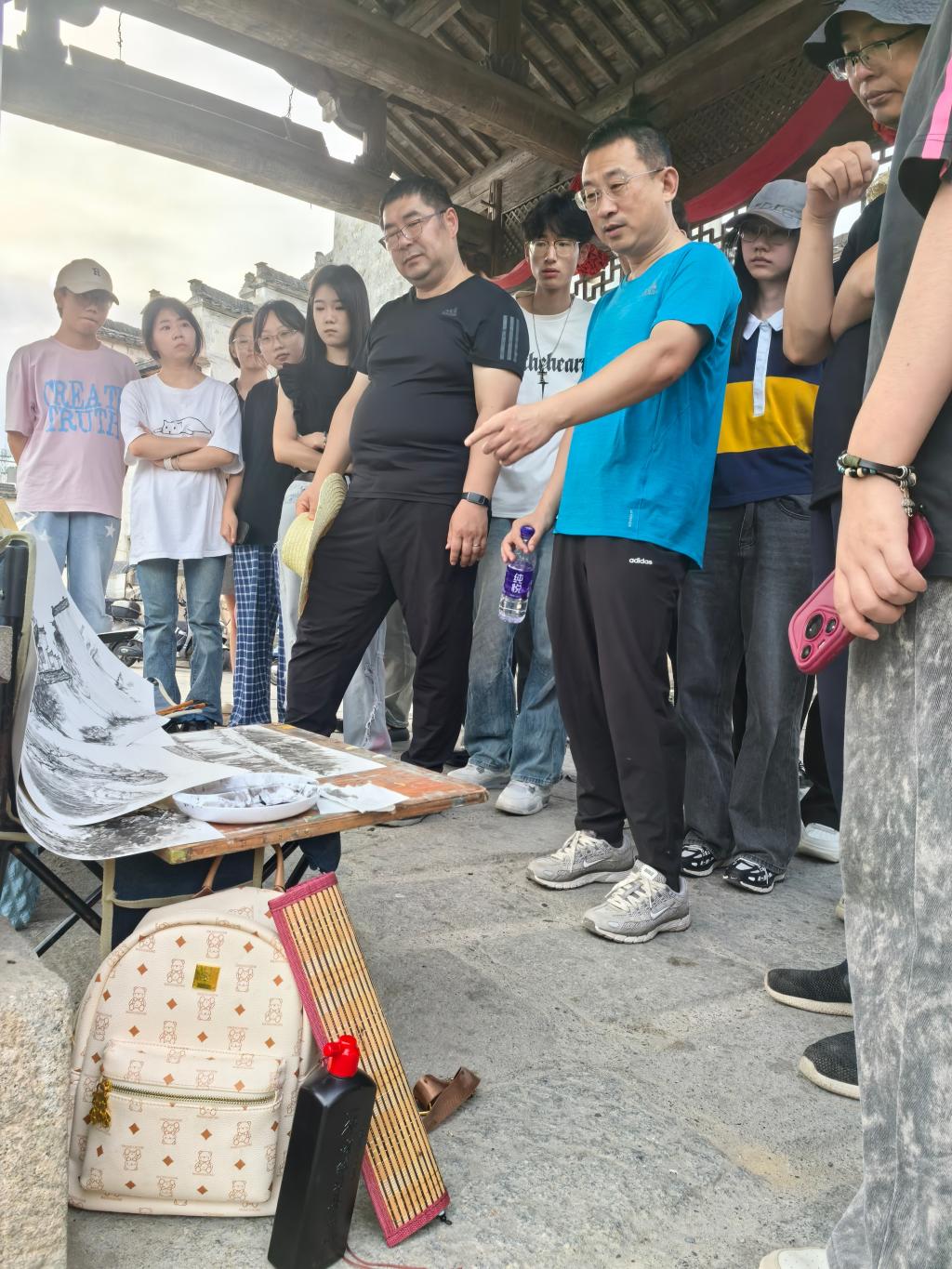 学院组织多个教学团队,11名专业教师,215名学生,一同前往写生调研基地。各教学团队充分挖掘当地思政教育资源,根据各专业需求,设计了贴合主题的教学内容。在屯溪老街,深入了解皖南地区的革命历史、中共皖南特委的发展历程与革命活动等,探寻红色基因传承密码;在宏村、西递,以古村落传统纹样的文化构建为切入点,讲授中国传统文明基因的现代阐释;在屏山,以“传统文化与乡村振兴”为方向,探寻优秀传统文化赋能乡村振兴的路径;在徽州文化博物馆,通过解读馆藏文物,讲述徽州地区的历史变迁和文化传承,引导学生感受文脉传承的深厚底蕴。