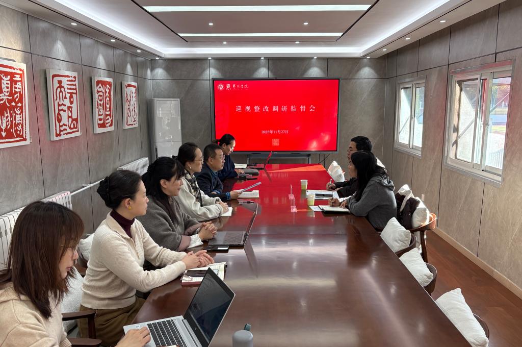 取得的成绩给予肯定,提出四点工作要求。一要把巡视整改与学院重点工作、“十五五”规划紧密结合起来,统筹推进学院高质量发展,确保巡视整改取得实效。二要加大重点领域廉政风险防控力度,严格落实“三重一大”实施办法,充分发挥班子成员示范带动作用,不断加强师生员工的廉洁教育。三要履行党委主体责任、党委书记第一责任人责任、班子成员“一岗双责”,坚定不移落实全面从严治党责任,持之以恒抓好作风建设。四要积极探索、分级分类,采取多种形式统筹开展党员师生党性、纪律、警示教育,确保教育内化于心外化于行。