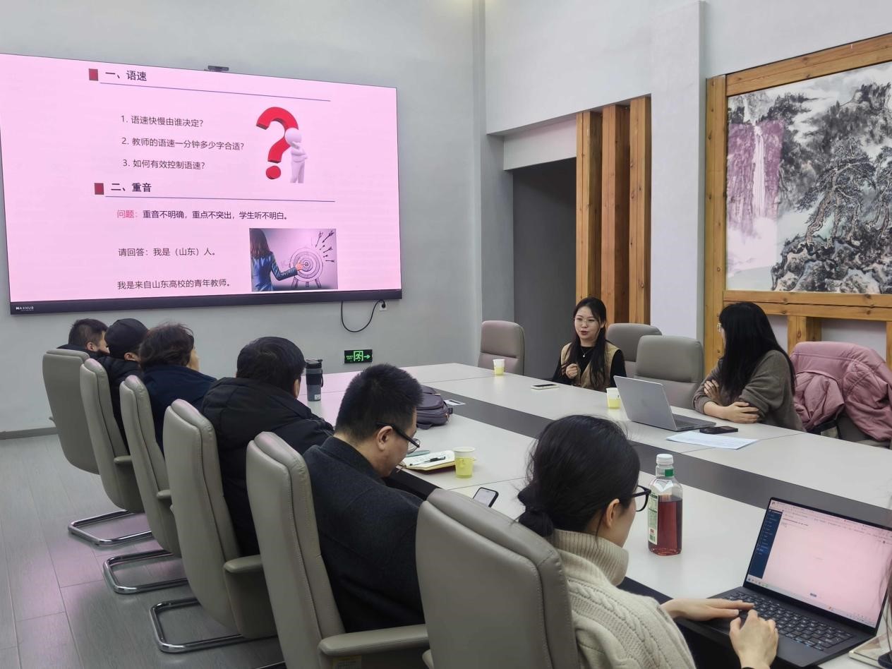 于12月18日下午在燕山校区5号楼一楼大厅会议室举办省级培训分享会。学院教师黄晓青、张翼飞分别分享了他们在山东师范大学和临沂大学参加山东省青年教师培训学习的成果和体会。学院副院长(主持工作)宋述林、各系部主任、教工党支部书记及近五年新进教师共同参与分享会。活动由崔敬副教授主持。