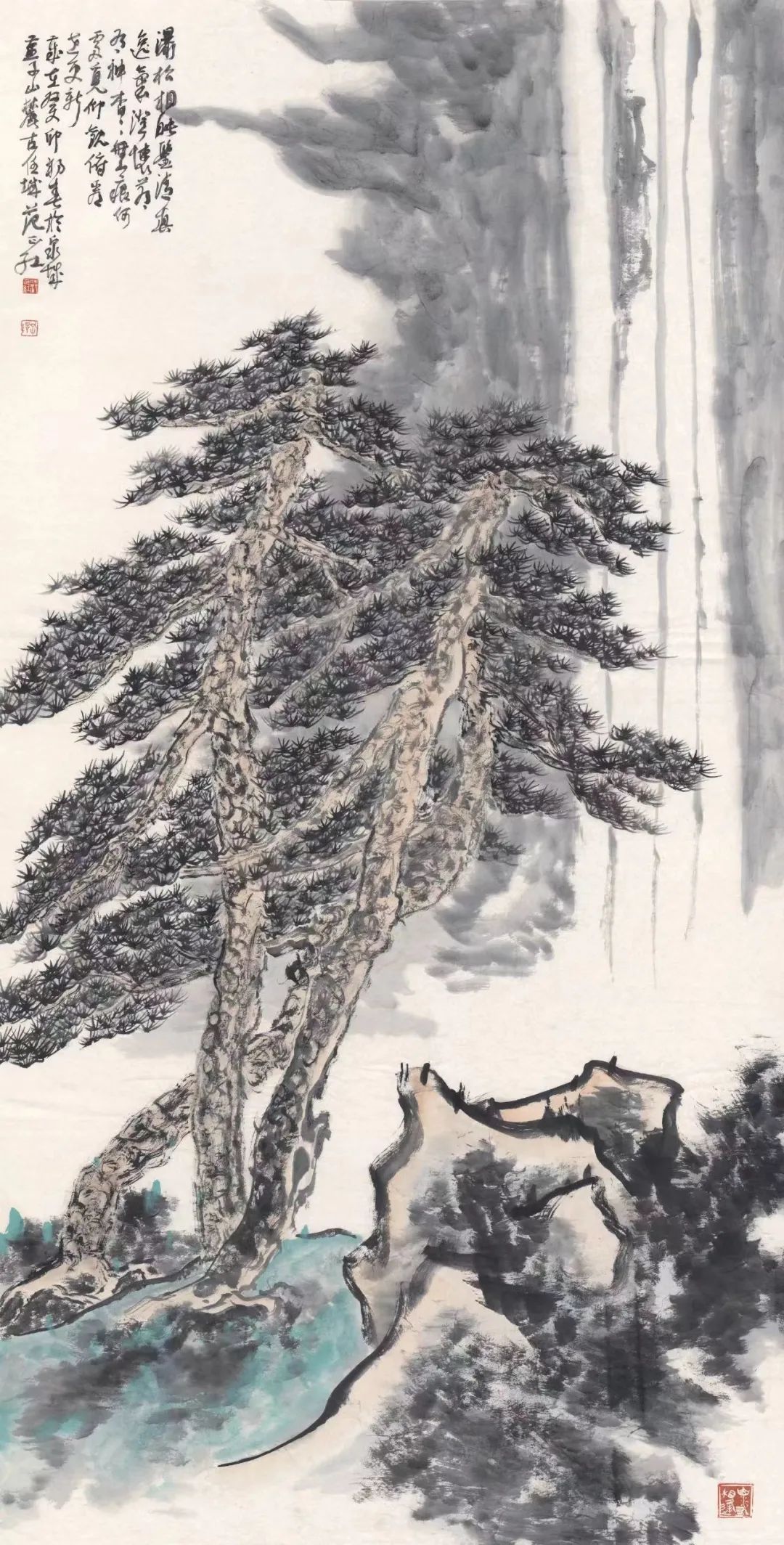 款识/瀑松相映鉴清真,逸气澄怀若有神。