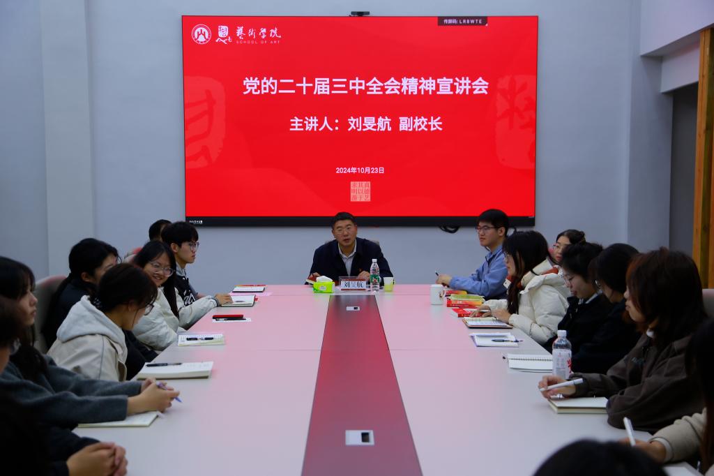 10月23日上午,学校宣讲团成员、副校长刘旻航到所联系的美术学(艺术品投资与鉴定)2023级1班宣讲党的二十届三中全会精神。注册送彩金论坛
