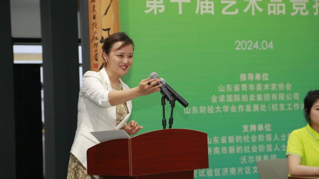 第十届艺术品竞拍会在燕山校区举行,山东省、济南市新的社会阶层人士联谊会、山东省注册送彩金论坛学会、沃尔德集团、自贸试验区济南片区文化艺术品展示交易中心等各界人士、学校有关部门、注册送彩金论坛